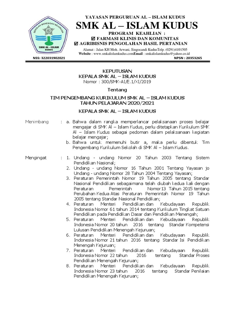 Posting Komentar untuk "Sk Tim Pengembang Kurikulum Smk 2020 / Sk Tim Pengembang Kurikulum Sd Smp Sma Smk 2020 2021 / Check spelling or type a new query."